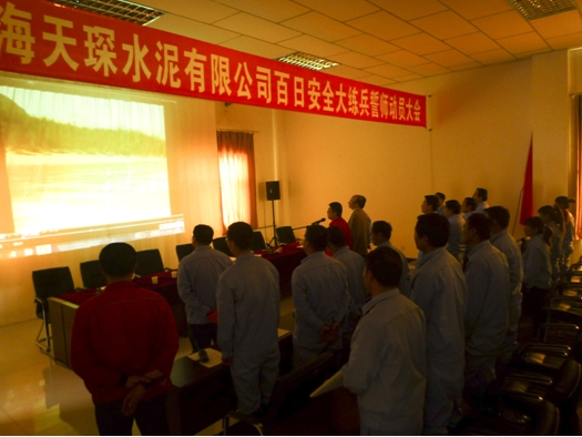 2012年4月29日星期日,天琛公司全體干職員工在辦公樓三樓會議室召開第十一個(gè)安全月“百日安全大練兵”動員大會。會議由公司安全生產(chǎn)部、綜合管理部組織召開,公司總經(jīng)理劉礦山在會上進(jìn)行百日安全大練兵活動的動員發(fā)言,公司副總經(jīng)理裴建華宣讀活動實(shí)施方案,同時(shí)動員大會邀請集團(tuán)運(yùn)行管理部倪宏山參加并發(fā)表講話。