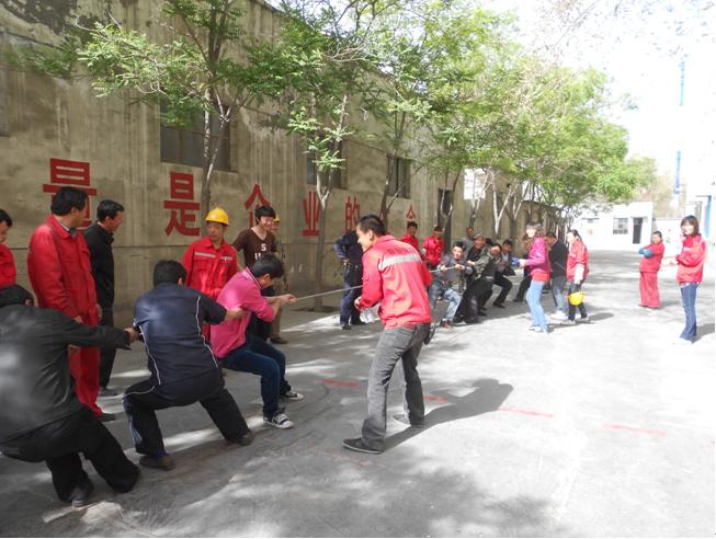4月28日,銀川公司為迎接“五一”國際勞動(dòng)節(jié),舉行了一場從總經(jīng)理到一線員工的全員運(yùn)動(dòng)會。集體項(xiàng)目有:拔河、4×100米接力、籃球等。個(gè)人項(xiàng)目有:100米賽跑、跳繩、象棋、乒乓球、臺球等。公司領(lǐng)導(dǎo)和員工共同參加了比賽,大家熱情高漲,斗志昂揚(yáng),讓溫暖、和諧、歡樂洋溢在每一個(gè)賽場。