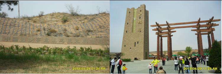 我們在沙坡頭旅游黃河區(qū)(南區(qū))買了門票,隨著人流,進(jìn)入景區(qū)。景區(qū)主大門是一個四四方方的立柱,加上“井”字形建筑造型構(gòu)成,立柱頂部呈長城烽火臺垛口造型,立柱右側(cè)上部有三個鎏金大字“沙坡頭”。 在景區(qū)大門東側(cè),是沙漠博物館,它的頂部呈金字形造型,游客可以免費進(jìn)去參觀。